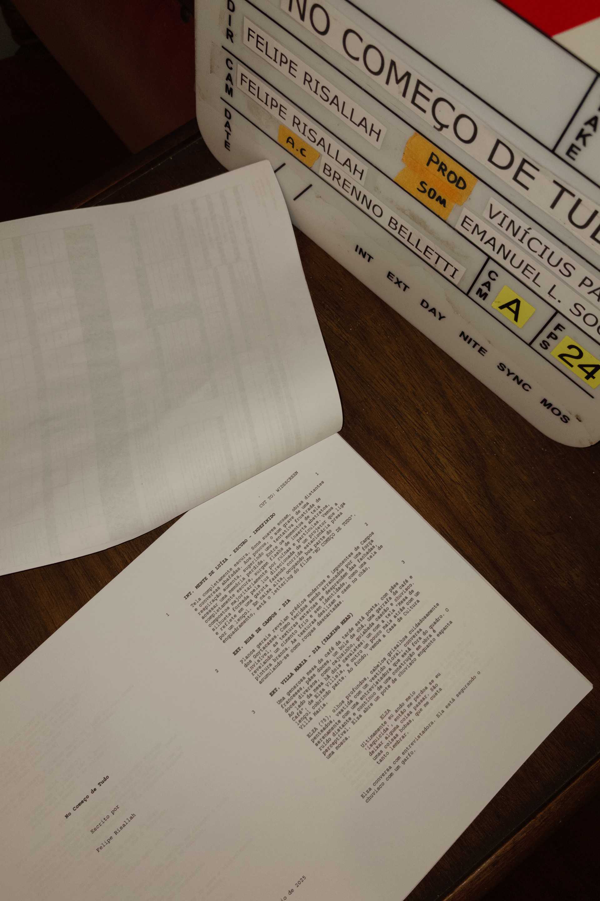 A ideia de No Começo de Tudo nasceu durante uma conversa com Elza Villela, avó do diretor Felipe Risallah e artista plástica que nasceu e viveu grande parte da sua vida em Campos dos Goytacazes. Diante de uma bela mesa de café, Elza compartilhou reflexões sobre sua vida, sua trajetória como artista, os desafios de manter viva sua prática criativa e as dificuldades da memória que começava a falhar. Aquela conversa foi o ponto de partida para tudo: inspirou a estrutura narrativa do filme e, principalmente, moldou o modo de agir e falar da personagem Elza.