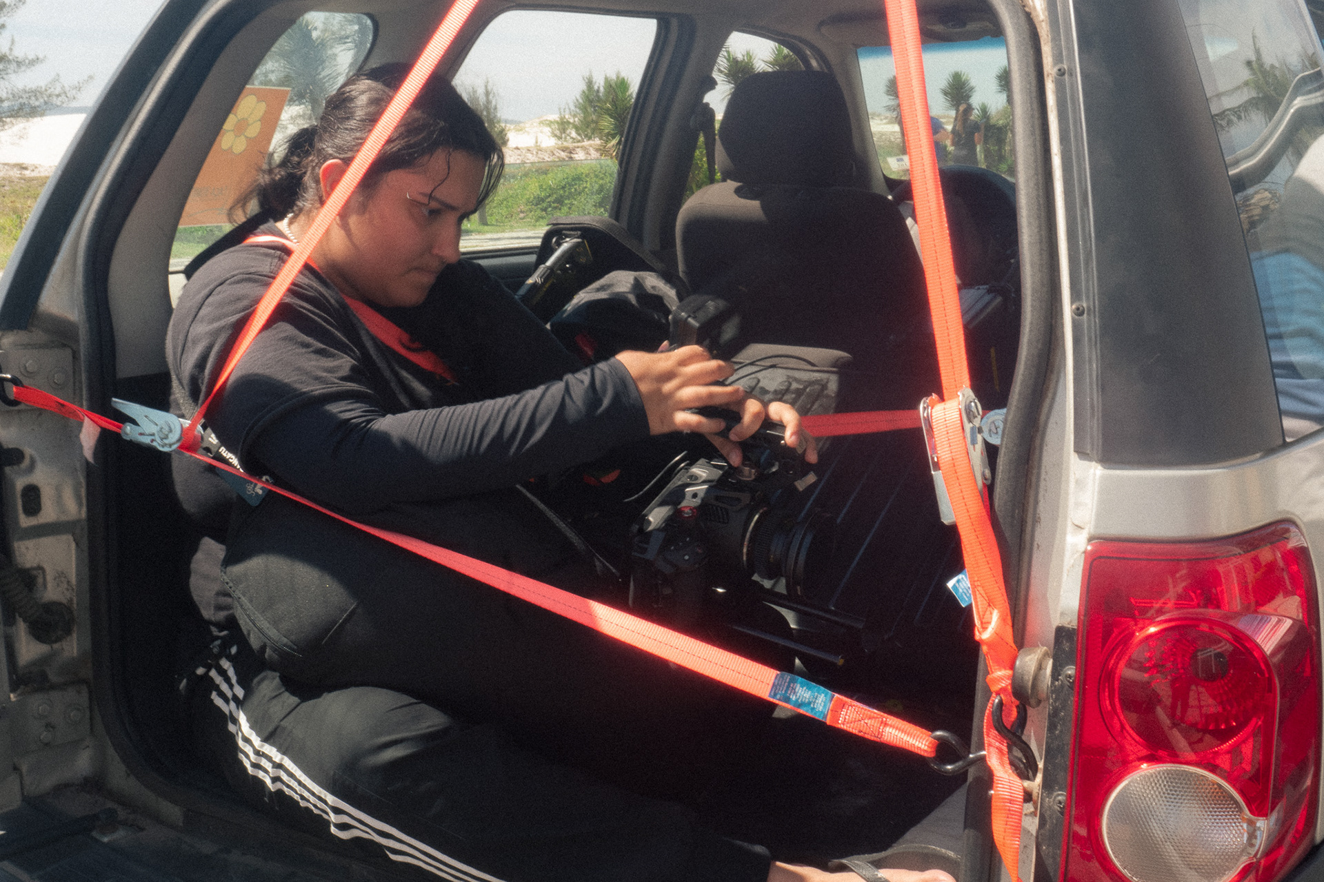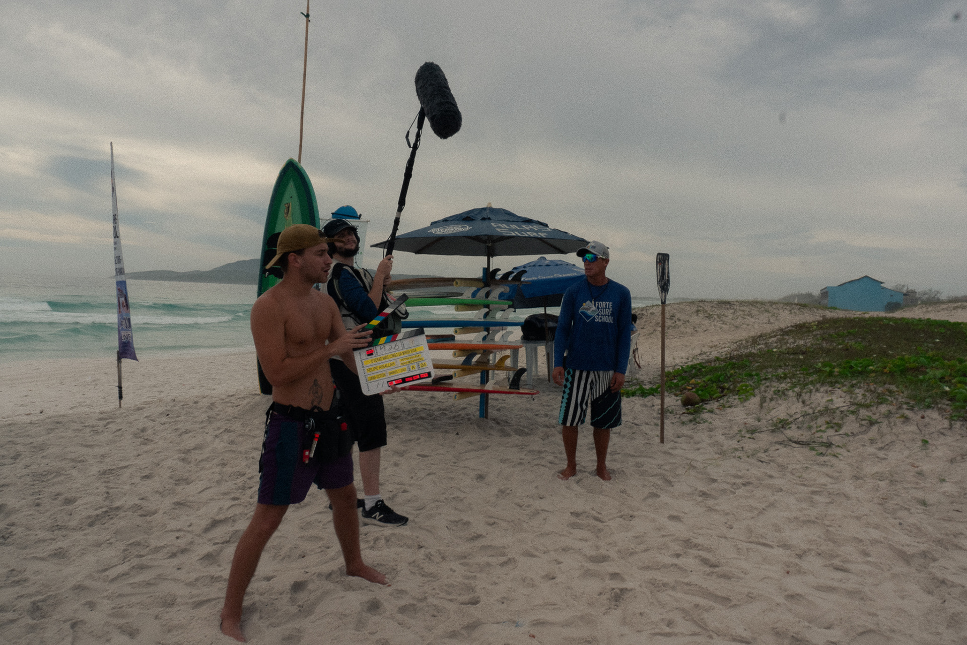 A Forte Surf School é parte essencial do universo do curta-metragem. No filme, o instrutor Luciano interpreta a si mesmo, guiando o personagem Joca em suas primeiras tentativas de surfar na Praia do Foguete. Sua participação vai além da atuação: Luciano, junto de Margareth e Diego, acolheu nossa equipe com generosidade e contribuiu para tornar a experiência ainda mais autêntica. A presença dele no filme reforça a conexão entre a ficção e a vida real — entre o cinema e a cidade.